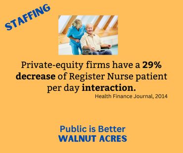 It also offers opportunities. There’s a $500,000 tax levy (approx $25 per household), on this building and so every year the County allocates $500K to the nursing home. So, if you are doing everything we just talked about, there’s a $500K profit because you didn’t need to dip into the tax levy. You can use that money for other things. You can fix the building, you can pay higher wages, buy nursing equipment, or pave the parking lot, EVERY year. You can do whatever you want with it, there should be extra tax money.